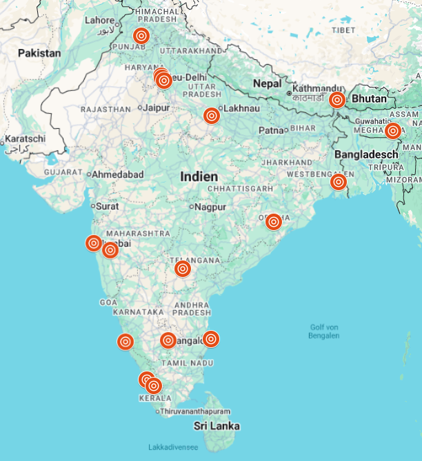 - Direkt vor Ort in Indien – 16 Standorte, eigene Sprachschulen und enge Kooperationen mit Universitäten