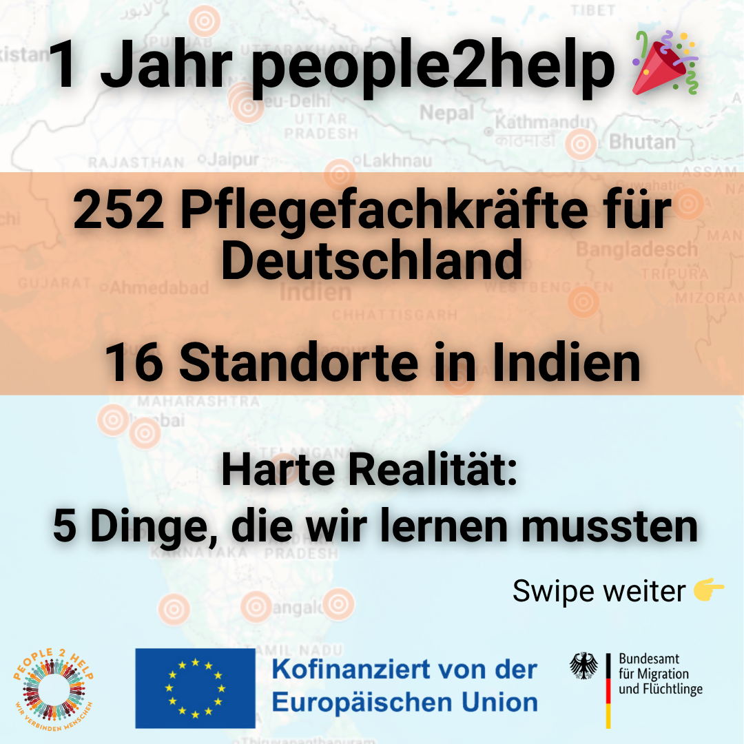 people2help ist dort aktiv, wo qualifizierte Pflegekräfte ihre Ausbildung beginnen. Mit unserem Headquarter in Delhi und 16 Standorten in ganz Indien haben wir ein Netzwerk aufgebaut, das weit über eine reine Schulung hinausgeht. Dazu gehören eigene Sprachschulen, Kooperationen mit Universitäten und staatlich anerkannte Partnerinstitutionen.