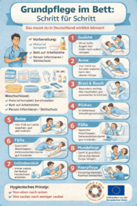 Und genau deshalb erkläre ich dir hier Schritt für Schritt, wie du eine vollständige Körpergrundpflege im Bett bei kompletter Übernahme sauber, hygienisch und würdevoll durchführst.
